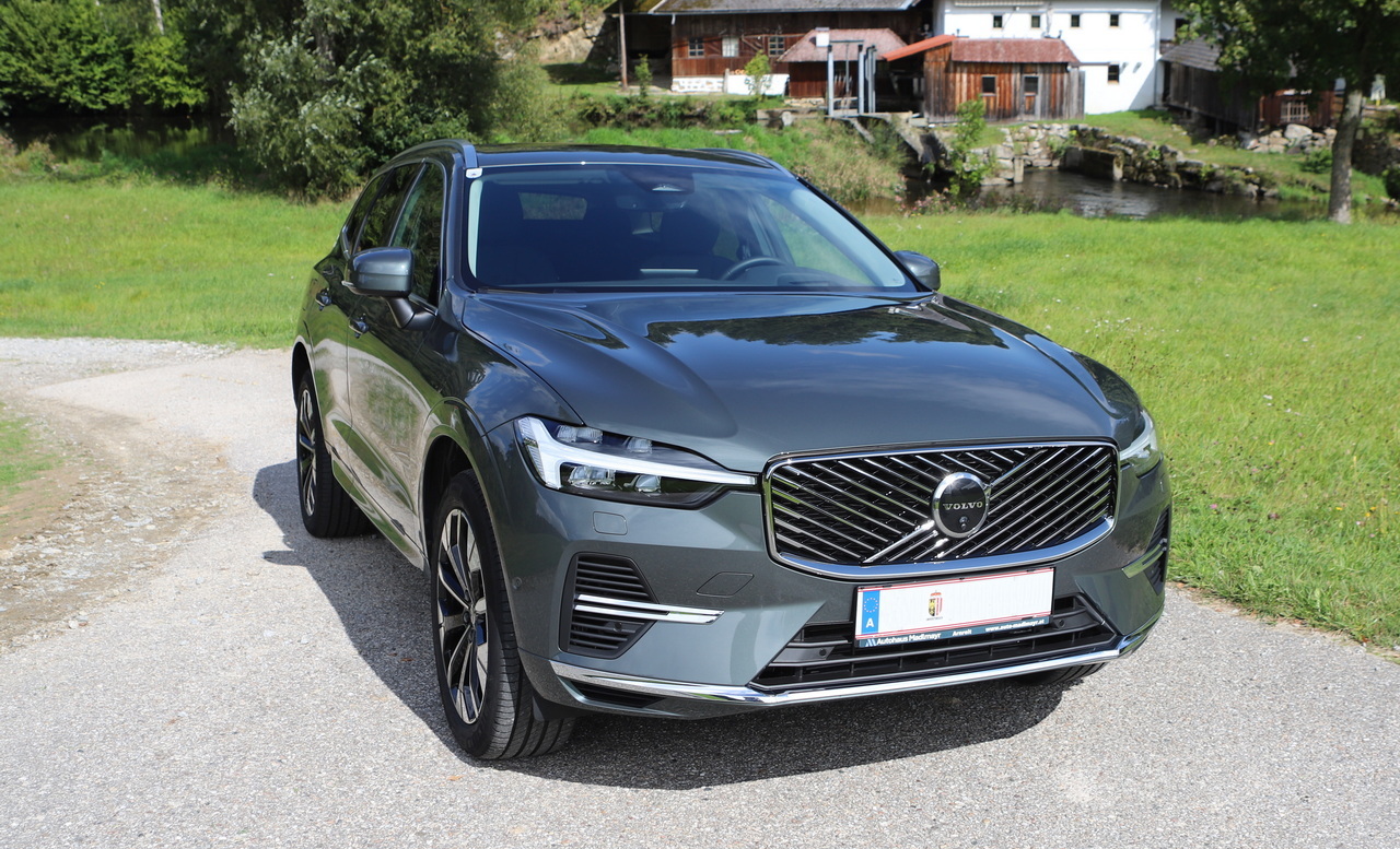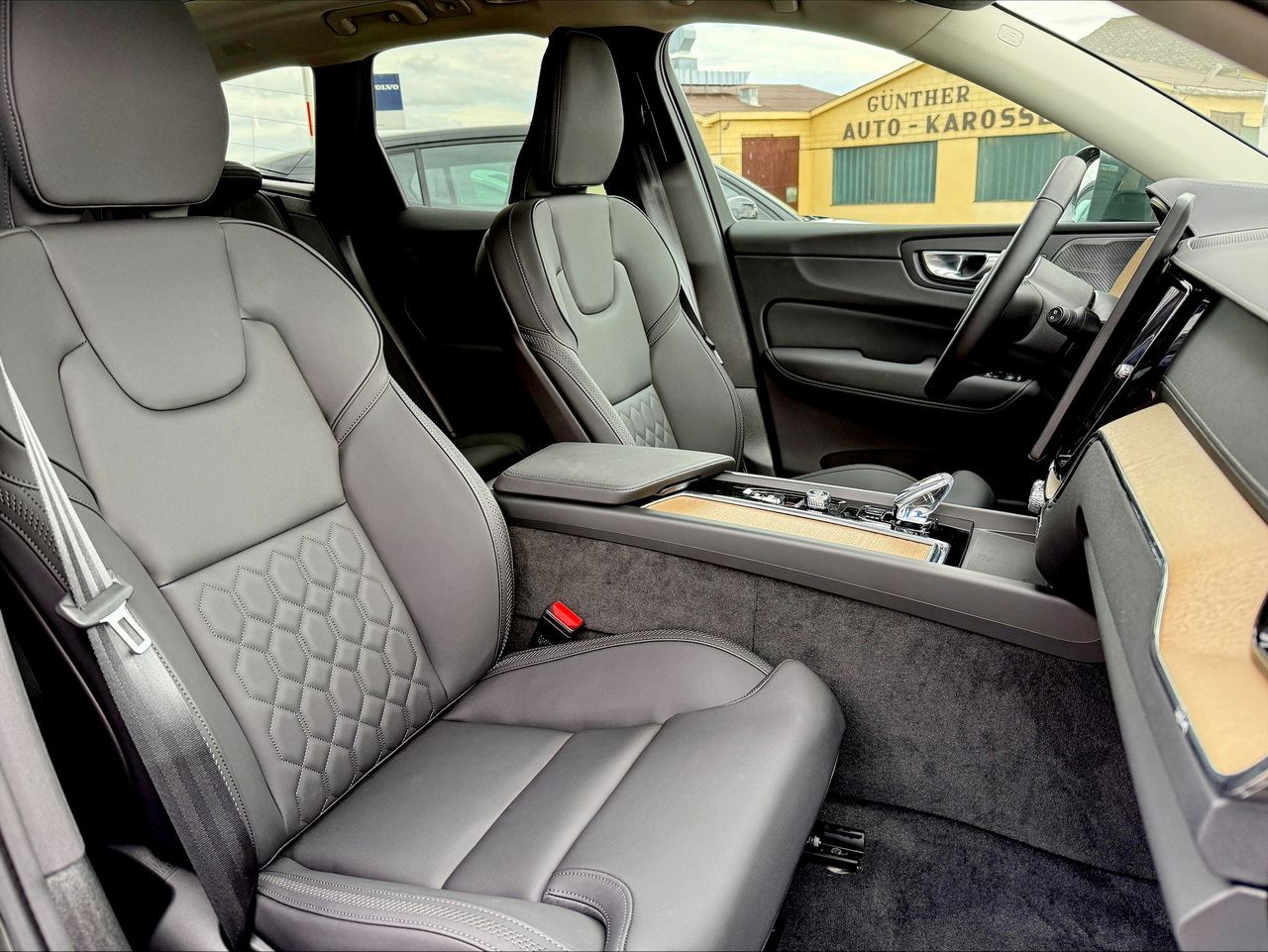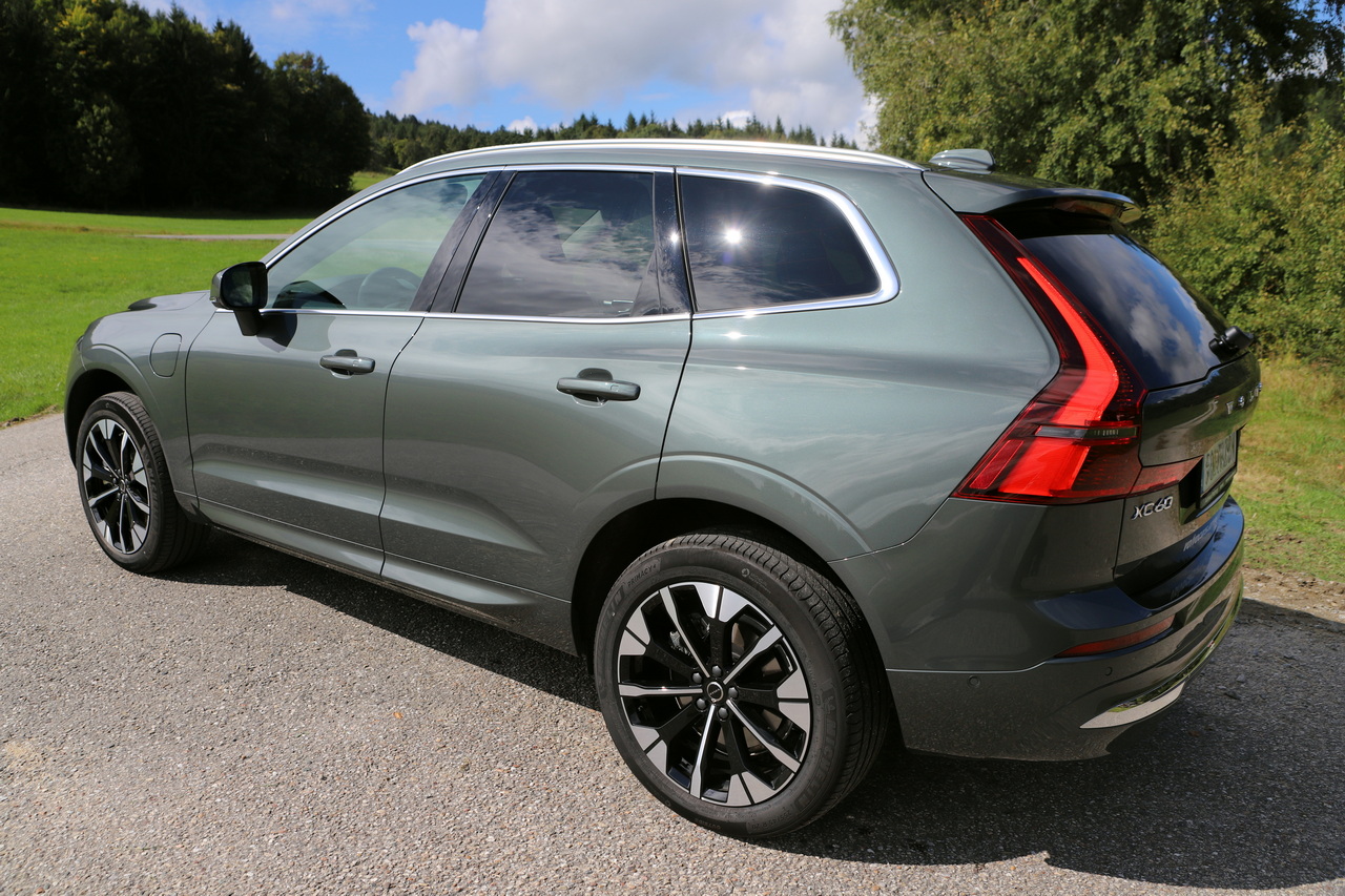 Ein Volvo XC60 T6 PHEV Ultra, das "T6" bezeichnet die Motorisierung und "Ultra" bedeutet die Ausstattungsvariante.