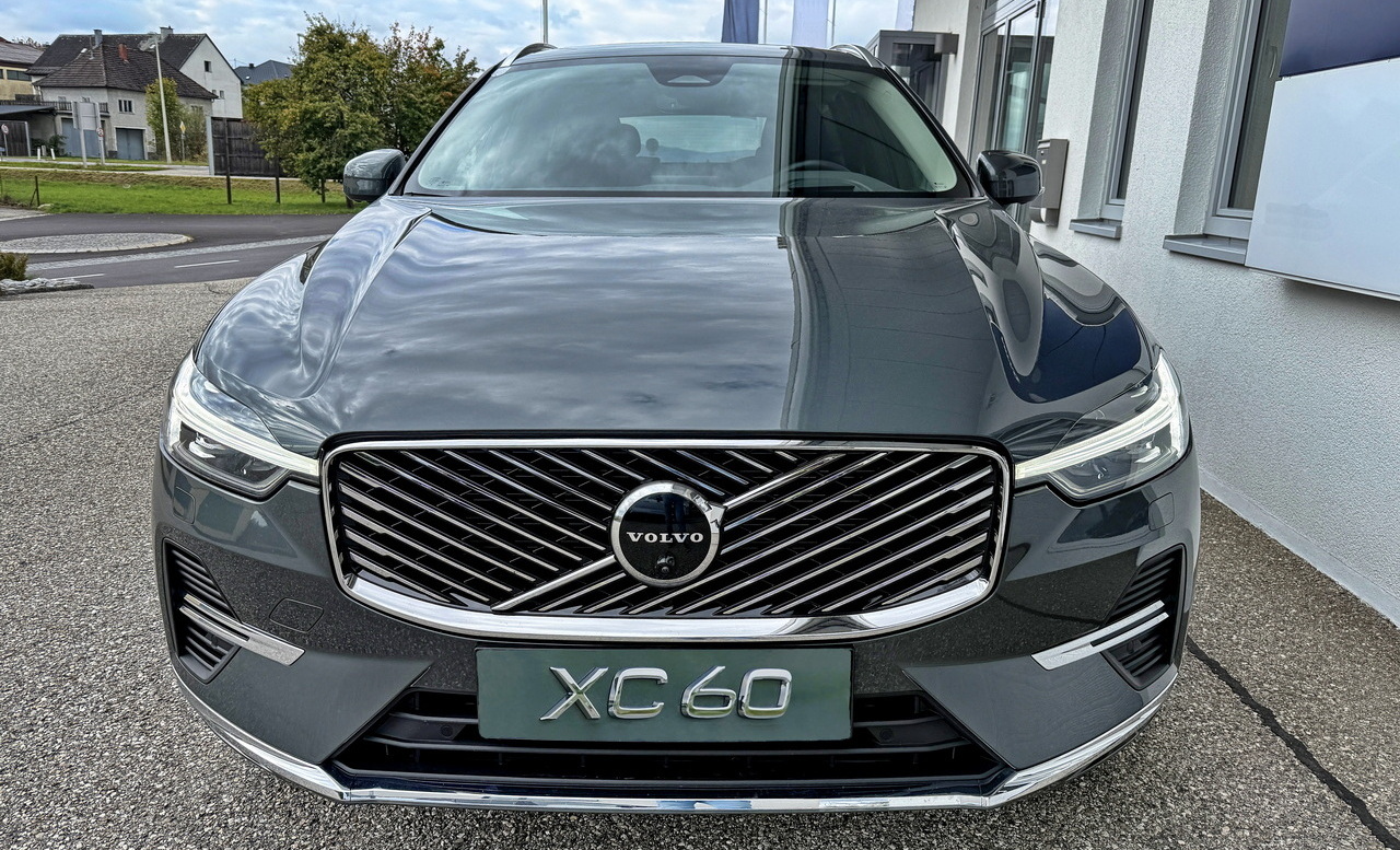 Ein Volvo XC60 T6 PHEV Ultra, das "T6" bezeichnet die Motorisierung und "Ultra" bedeutet die Ausstattungsvariante.